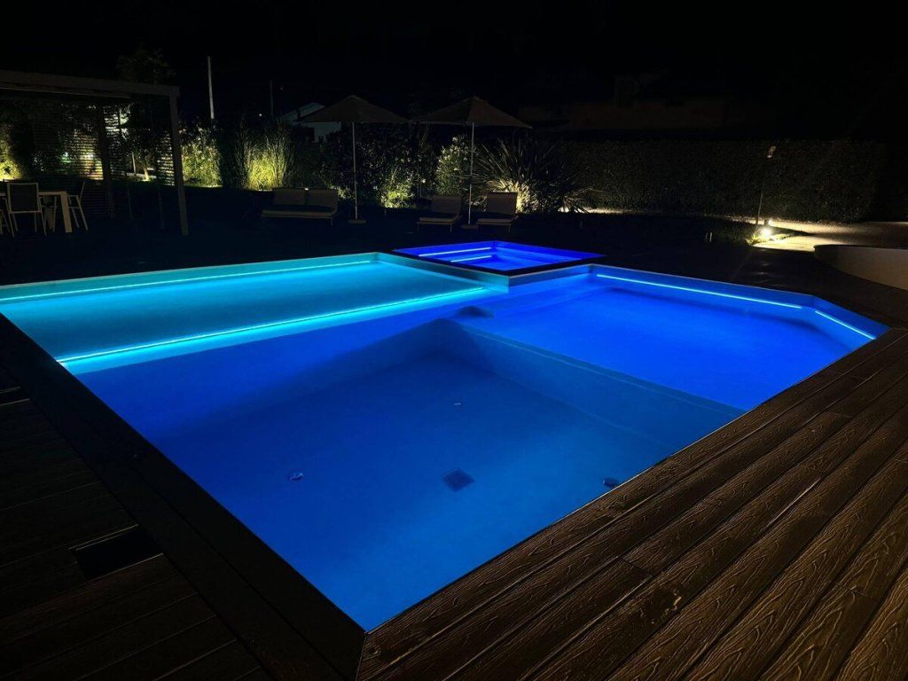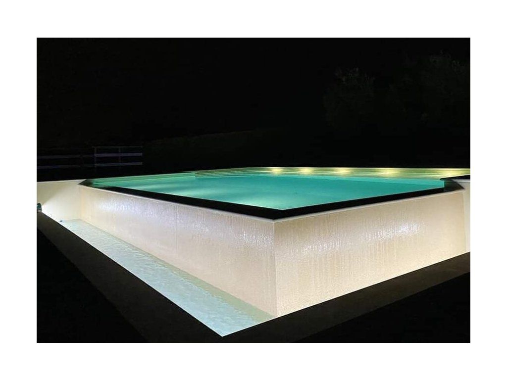 A készlet teljes körű. Tartalmazza a megfelelő LED szalagot, egy hátulról szellőző IP68-as besorolású tápkábelt (4x0,50 mm² / 5,9 mm), a szükséges fali tömítést, tápegységet és távirányítót, valamint egy tömítő KIT-et.